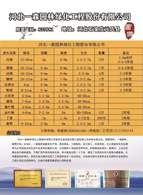 此次會(huì)議由河北省林木種苗協(xié)會(huì)主辦,一森園林公司承辦,支持媒體有《中國(guó)花卉報(bào)》、《中國(guó)綠色時(shí)報(bào)》和元氏電視臺(tái),參加會(huì)議的技術(shù)專家有河北省科技廳農(nóng)村處處長(zhǎng)徐成、河北省林業(yè)和草原局國(guó)有林場(chǎng)和林木種苗管理處處長(zhǎng)張錦成、河北省林業(yè)和草原局科技處副處長(zhǎng)劉新、石家莊市科技局農(nóng)村處處長(zhǎng)高少軒、石家莊市科技局市科技局法規(guī)處副處長(zhǎng)趙春杰、元氏縣科技局局長(zhǎng)李旭樓、河北省林木種苗協(xié)會(huì)會(huì)長(zhǎng)汪民、協(xié)會(huì)副會(huì)長(zhǎng)、河北一森園林綠化工程股份有限公司董事長(zhǎng)耿軍林、專委會(huì)主任河北農(nóng)業(yè)大學(xué)園林旅游學(xué)院院長(zhǎng)黃大莊、副主任委員河北農(nóng)業(yè)大學(xué)林學(xué)院教授、博士生導(dǎo)師楊敏生、河北省林業(yè)和草原科學(xué)研究院黨委書記、教授級(jí)高工王玉忠等人。
